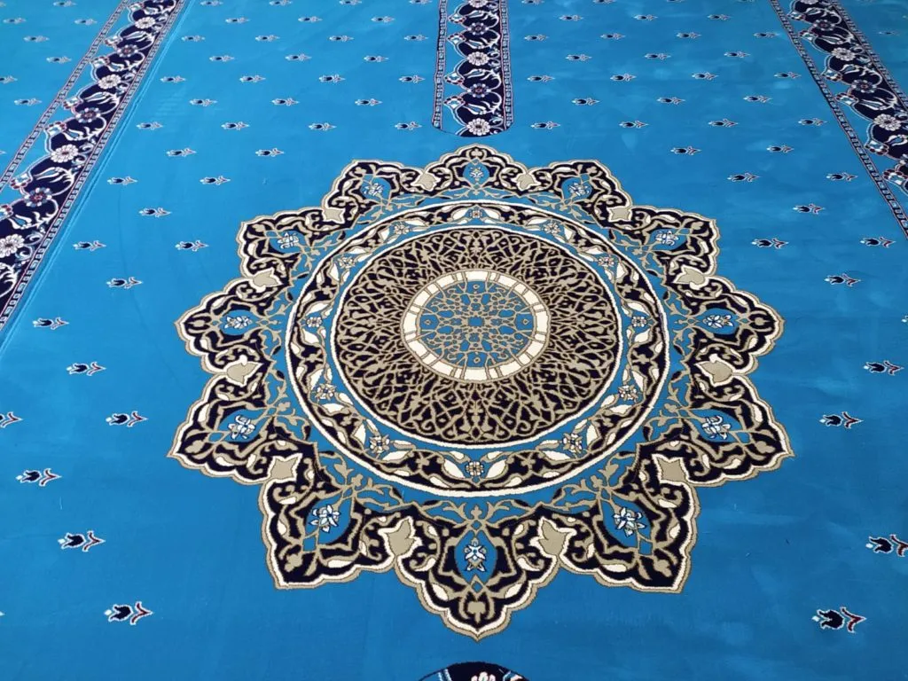 Center patterned mosque carpet CPC-09 enhances prayer halls with blue tones and detailed sequential designs. Its elegant pattern creates a peaceful, organized, and visually appealing mosque carpet for prayer and meditation spaces.