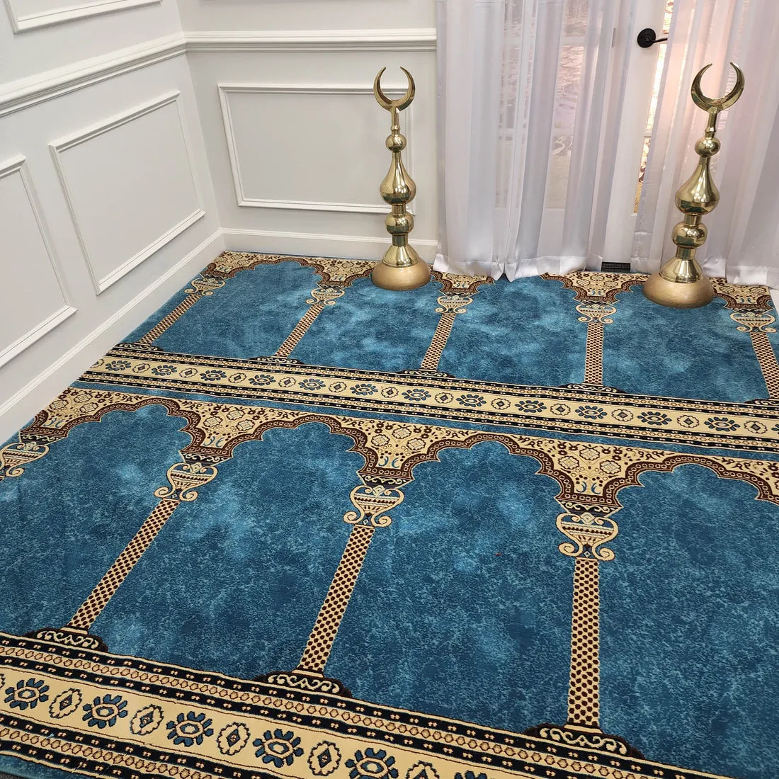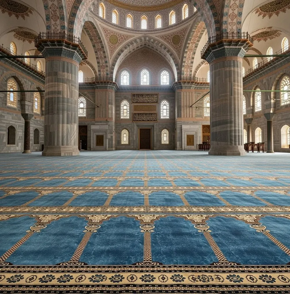 Maysa Arched Elegance mosque carpet offers thick, dense comfort for prayer halls. With 14 mm pile height, 1 million points per square meter, and elegant arched design, this mosque carpet provides durability and support for daily salah.