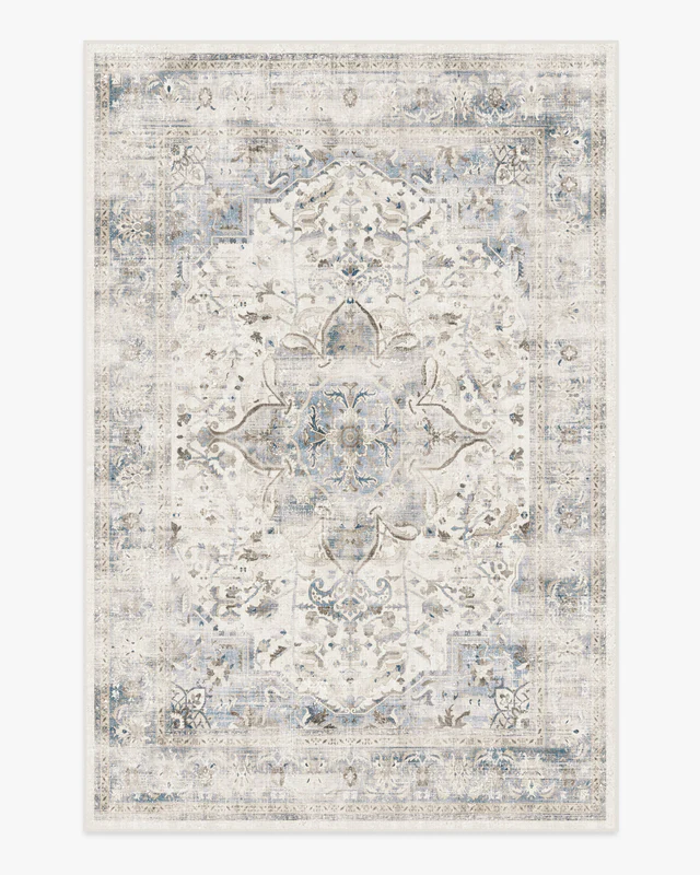 The Sarrah Blue Quartz Rug features calming blue tones and a soft texture, adding comfort and modern elegance to any space.